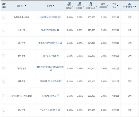 금감원은 “금융회사의 상품별 이자율 등 거래조건이 수시로 변경돼 지연 공시될 수 있으므로 거래 전 반드시 해당 금융회사에 문의해야 한다”고 밝혔다.