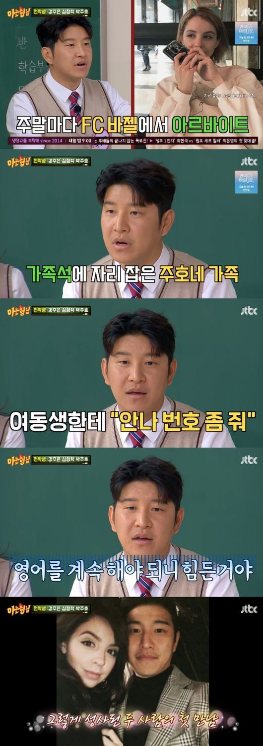 박주호는 영어에 미숙해 아내와 오해가 있었던 일화를 소개했다. 그는 “잘 이야기하다가 갑자기 싸해질 때가 있다. 단어 하나를 잘못 써서. ‘너 지루하지?’로 말한 건데 ‘지루한 사람’이 되어버린 것이다. 그럼 번역기를 쓴다”라고 설명했다.