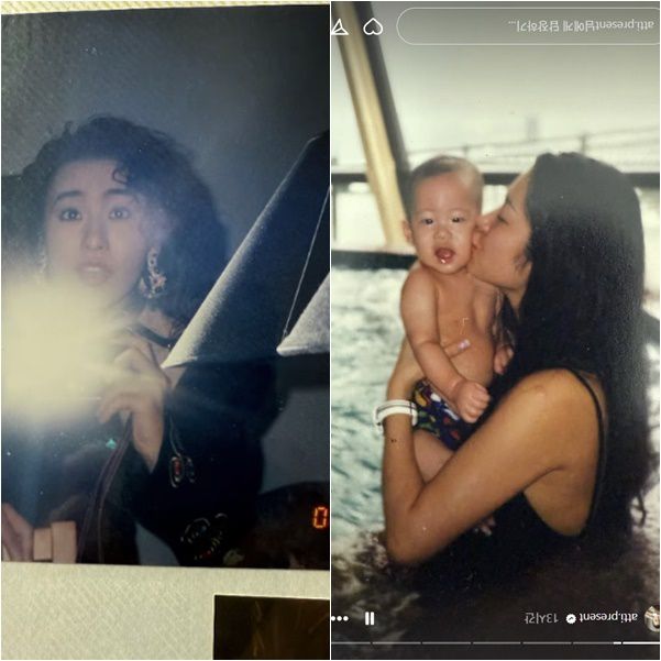 아들과 함께 찍은 사진과 90년대 자신을 찍은 사진, 오래된 메모에서 아련하면서도 애틋한 감성이 풍기는 모습이다.