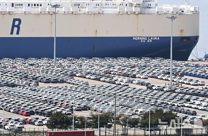 [평택=뉴시스] 김종택 기자 = 21일 경기 평택항 자동차 전용부두에 선적을 기다리는 수출용 차량이 세워져 있다.2025.04.21. jtk@newsis.com |