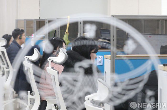 [서울=뉴스핌] 최지환 기자 = 경찰청은 올해 1~3월 보이스피싱 범죄 발생 건수가 5878건으로 지난해 같은 기간 대비 17% 증가했다고 밝혔다. 사진은 서울 종로구 보이스피싱 통합신고대응센터에서 직원들이 상담 전화를 하고 있다. choipix16@newspim.com