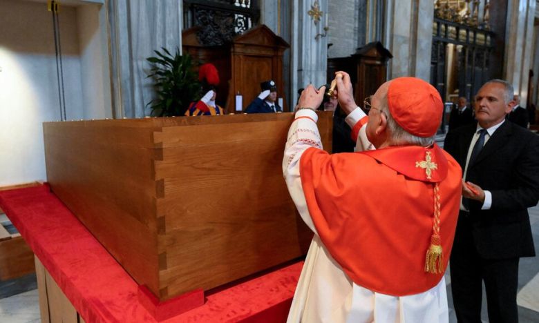 마조레 대성전에 도착한 교황을 마지막으로 맞이한 건 노숙인과 수감자 등 40여명이었다. 이들은 흰 장미를 들고 대성전 안으로 들어가는 교황의 목관을 바라봤다. 대성전 안에선 교황의 관을 무덤에 안장하는 의식이 30분가량 진행됐다. 방문객들은 27일부터 마조레 대성전에서 교황의 무덤을 볼 수 있다.