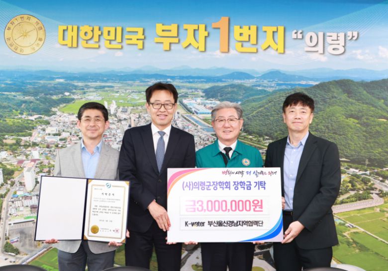 K-water 부산울산경남지역협력단(단장 조태영)은 의령군 인재양성을 위해 의령군장학회에 기금 300만원을 전달했다.