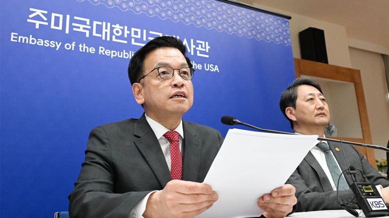 ▲ 최상목 부총리 겸 기획재정부 장관(왼쪽)이 24일(현지시간) 미국 워싱턴DC 주미대사관에서 열린 '한미 2+2 통상협의' 결과 브리핑에서 발언하고 있다. 오른쪽은 안덕근 산업통상자원부 장관.