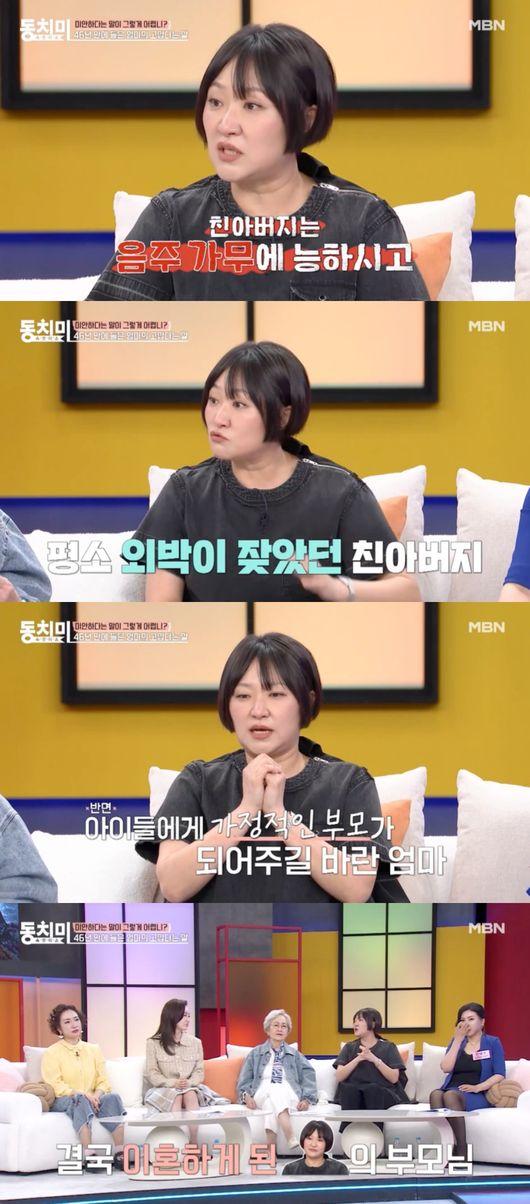 김현숙은 "지금은 엄마가 재혼을 하셨는데 저도 친아빠가 계셨다. 친아버지가 음주가부 주색잡기에 능하셨다. 아침에 눈을 뜨면 항상 아빠 자리에 아빠가 없었다. '아빠는?'이라고 물으면 엄마가 항상 '아빠는 숙직이야' 라고 하셨을 정도다. 엄마는 주말이 되면 우리랑 놀기도 하고 가정적인 아빠를 바라셨다. 그런데 그러지 못하시니까 이혼을 하셨다"라고 어린 시절 가정사를 고백했다.