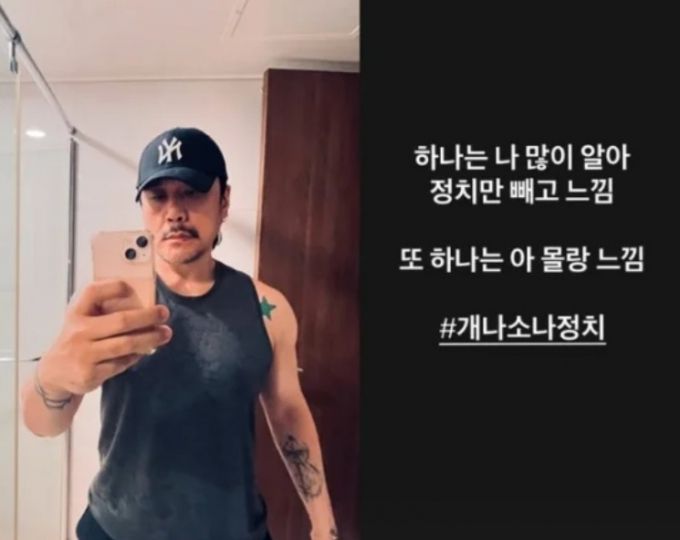 JK김동욱은 27일 SNS(소셜미디어)에 "하나는 나 많이 알아. 정치만 빼고 느낌. 또 하나는 아 몰랑 느낌"이라며 해시태그로 #개나소나정치 라고 덧붙였다.