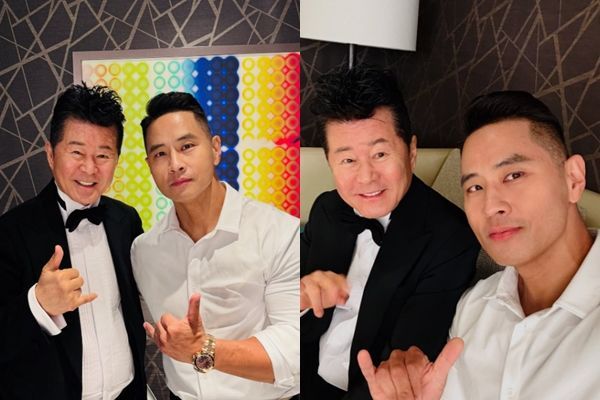 공개된 사진 속 유승준은 흰 셔츠에 깔끔한 스타일링을 했다. 태진아는 블랙 턱시도에 보타이를 매고 환한 미소를 지었다.