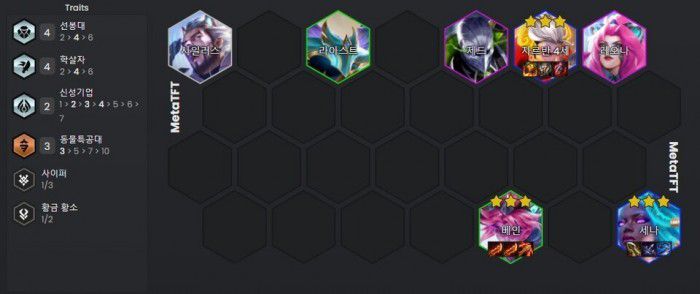 세트 초반에도 좋은 평가를 받았으나 이어진 업데이트를 통해 독보적인 1티어로 올랐다. 세트 초반과 덱구성은 비슷하지만, 운영 디테일이 조금 변했다.
