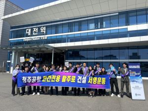 도는 지난 25일 오전 대전역 광장과 KTX 입구에서 청주공항 민간전용 활주로 신설 서명운동 및 홍보활동을 추진했다.