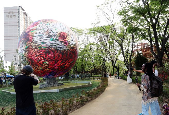 서울 송파구 석촌호수에 설치된 '더 스피어' /송파구 |