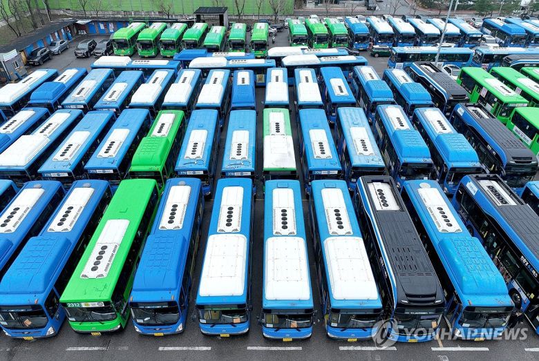 2024년 3월 파업 당시 서울 공영 차고지에 주차된 시내버스들 [연합] |