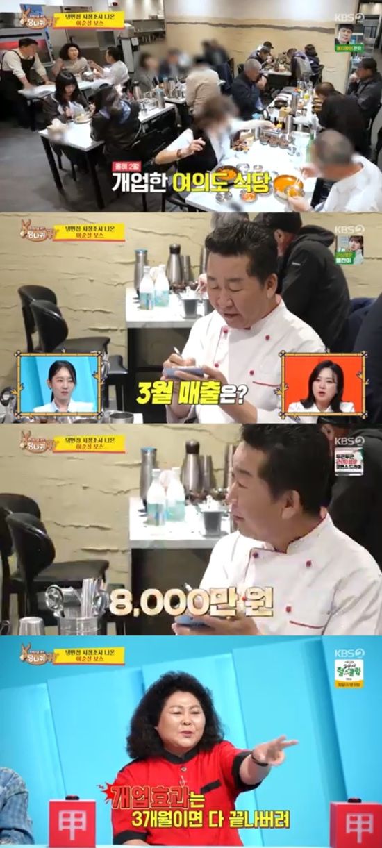 27일 방송된 KBS 2TV '사장님 귀는 당나귀 귀'에서는 전철우가 여의도 새 식당의 매출을 공개하는 모습이 전파를 탔다.