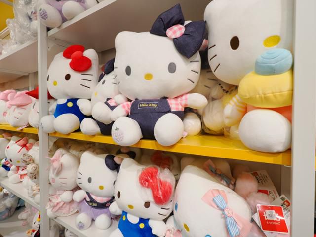 중국에서 생산된 헬로키티 봉제인형이 18일 미국 캘리포니아주 샌프란시스코의 한 가게에 진열돼 있다. 미국과 중국의 '관세 치킨게임'이 지속될 경우 미국 내 완구류 가격은 크게 오를 것으로 예상된다. 샌프란시스코=EPA 연합뉴스