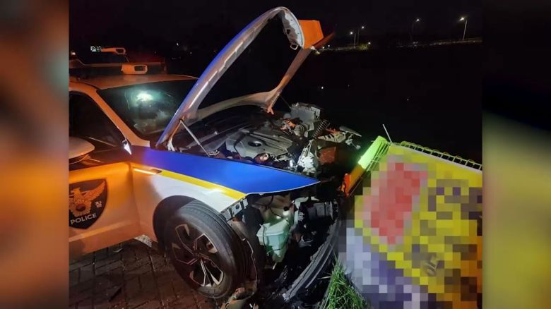 오늘(27일) 새벽 1시 40분쯤 음주운전 의심 차량을 추격하던 순찰차가 가로등과 펜스를 들이받았습니다.