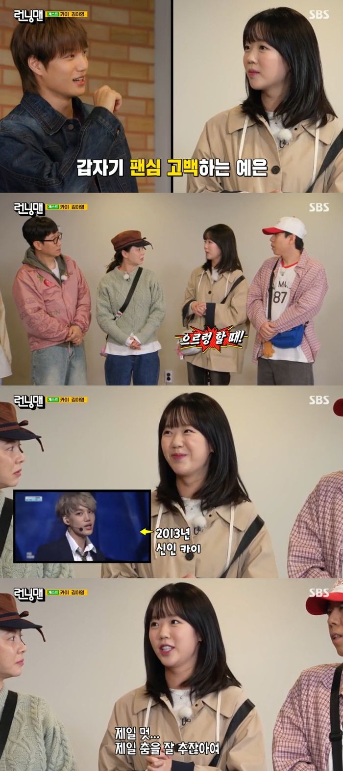 이날 방송에서 지예은은 “제가 카이님 제일 좋아했어요. ‘으르렁’ 할 때부터 좋아했는데 춤을 제일 잘 추시더라고요”라며 팬심을 고백했다.