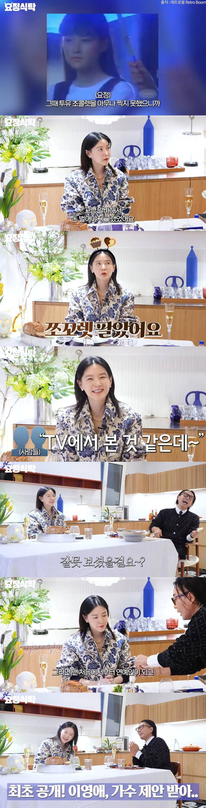 이영애는 "가수 프러포즈도 있었다"며 "엄정화 언니랑 같이 만날 수도 있었다"고 말해 놀라움을 더했다. 대학교 1학년 시절이었다는 이영애는 전속계약이었냐는 물음에 그렇다며 "제 노래도 듣지 않으시고. 그때는 이때처럼 아이돌이 붐업이 된 게 아니었기 때문에 무서웠었다"고 전했다.