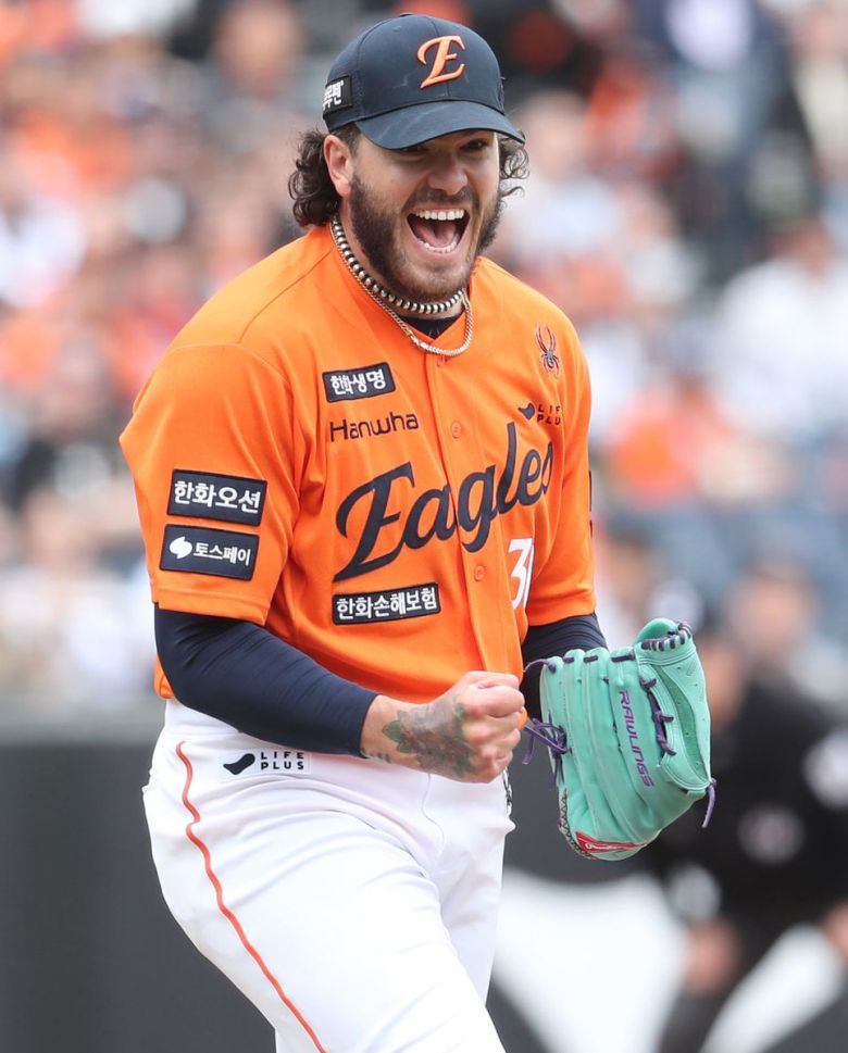 폰세는 이날 7이닝 동안 3피안타 4사사구 5탈삼진 무실점으로 승리의 일등공신이 됐다. 최근 3경기 연속 7이닝 무실점이다. 폰세는 또 9일 잠실 두산전 6회부터 최근 22이닝 연속 무실점 행진을 이어가고 있다. 시즌 평균자책점도 2점대(2.31)에서 1점대(1.96)로 낮췄다.