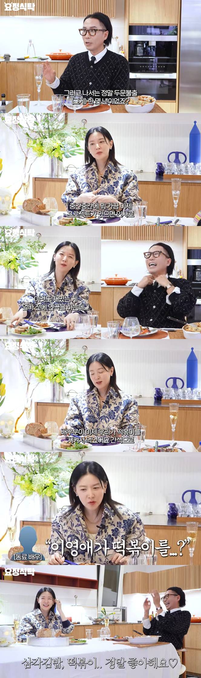 동료 배우가 '떡볶이를 드세요?' 하더라. 너무 놀라면서"라며 "'전 인생이 인스턴트에요'라고 말해 웃음을 자아냈다. 자녀들에게 양평에서 유기농을 먹였던 이영애의 반전매력이 돋보였다.