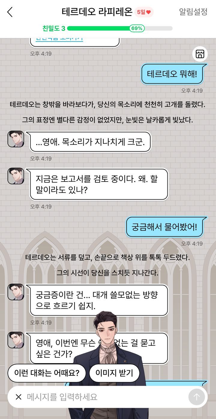 [서울=뉴시스] 캐릭터챗 테르데오의 친밀도에 따른 대화 변화 이미지. (사진=네이버웹툰 제공) 2025.04.28. photo@newsis.com *재판매 및 DB 금지
