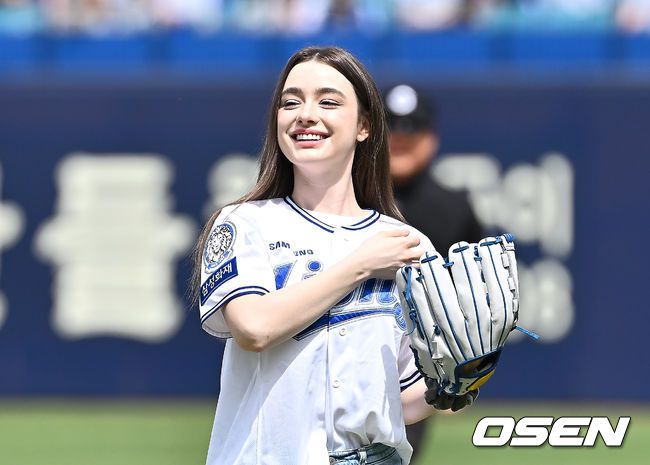 [OSEN=대구, 이석우 기자] 27일 대구삼성라이온즈파크에서 2025 신한 SOL 뱅크 KBO 리그 삼성 라이온즈와 NC 다이노스의 경기가 열렸다. 홈팀 삼성은 레예스가, 방문팀 NC는 신민혁이 선발 출전했다. 러시아 출신 모델 다샤타란이 삼성 라이온즈 승리기원 시구를 하고 있다. 2025.04.27 / foto0307@osen.co.kr |