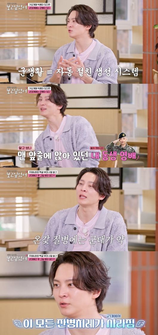 한편, 주원은 군대 가고 나서 잔병치레가 사라졌다고 말해 눈길을 끌었다. 그는 “군대 가면 다 낫는다고 하는데 사실 말도 안된다고 생각했다. 장염이랑 감기 달고 살았는데 실제로 다 나았다. 또 예방 접종 맞으면 꼭 아팠는데 모든 현상이 군대에서 다 사라졌다”라고 설명했다.