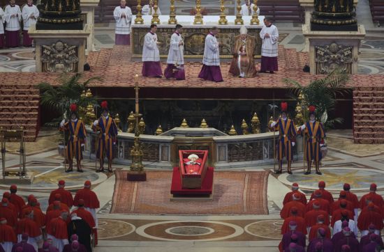 바티칸 성 베드로 대성전에 안치된 프란치스코 교황 모습. AP연합뉴스 |