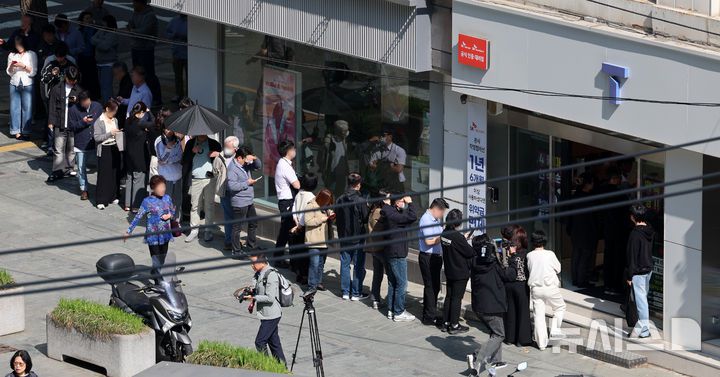 [서울=뉴시스] 이영환 기자 = SK텔레콤이 사이버 침해 피해를 막기 위해 전국 2600여곳의 T월드 매장에서 희망 고객들을 대상으로 유심 무상 교체를 진행하는 28일 오전 서울 시내의 한 T월드 매장에서 시민들이 유심 교체를 하기위해 대기하고 있다. 2025.04.28. 20hwan@newsis.com