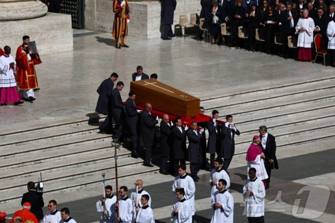 28일 로이터통신·CNN 등에 따르면 프란치스코 교황의 장례 미사에는 25만명의 조문이 참석했다. 미사는 십자가 문양이 새겨진 목관을 성 베드로 성전에서 야외 제단으로 운구하며 시작돼 입당송 '주여, 영원한 인식을 내리소서'에 이어 기도와 성경 강독, 미사를 주례하는 추기경단장 조반니 바티스타 레 추기경의 강독 순으로 진행됐다.