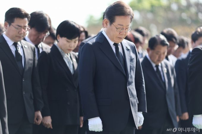 이재명 더불어민주당 대선후보가 현충원을 참배하고 방명록에 "국민이 행복한 나라, 국민이 주인인 大(대)한민국, 국민과 함께 꼭 만들겠다"고 적었다. 이 후보는 이승만·박정희·김영삼·김대중 전 대통령 묘역 뿐 아니라 당초 계획에 없던 박태준 전 국무총리 묘역도 참배할 예정이다.