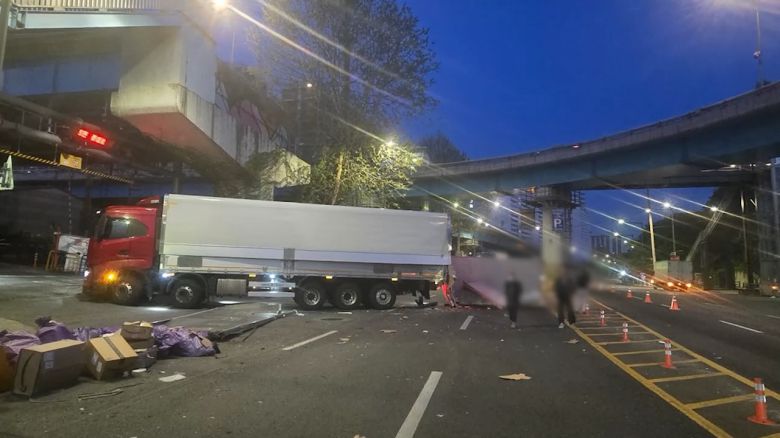 오늘(28일) 오전 5시쯤 서울 용산구 서빙고역 인근 도로에서 5톤 화물차가, 우회전하기 위해 정차 중이던 25톤 화물차를 들이받았습니다.