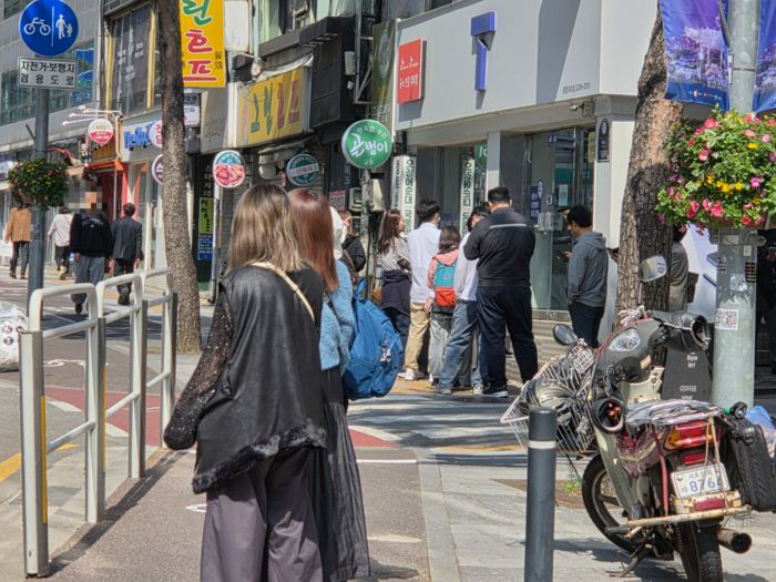 서울 중구에 위치한 SK텔레콤 대리점 앞에 유심 교체를 원하는 가입자들이 줄서 개점을 기다리고 있다. 이동인 기자 |