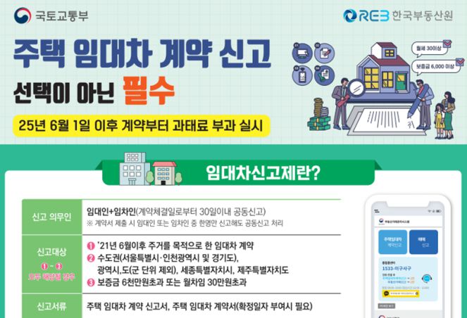 28일 국토교통부는 주택 임대차계약 신고제(전월세 신고제)의 계도기간을 더 이상 연장하지 않고 6월부터 과태료 부과를 본격 시행한다고 밝혔다. 해당 제도는 문재인 정부 당시인 2020년 7월 국회를 통과한 ‘임대차 3법’ 중 하나다. 전월세 신고제는 보증금이 6000만 원을 넘거나 월세가 30만 원을 초과하는 경우 계약일로부터 30일 이내에 임대인과 임차인이 계약 내용을 지방자치단체에 신고하도록 의무화한 제도다.