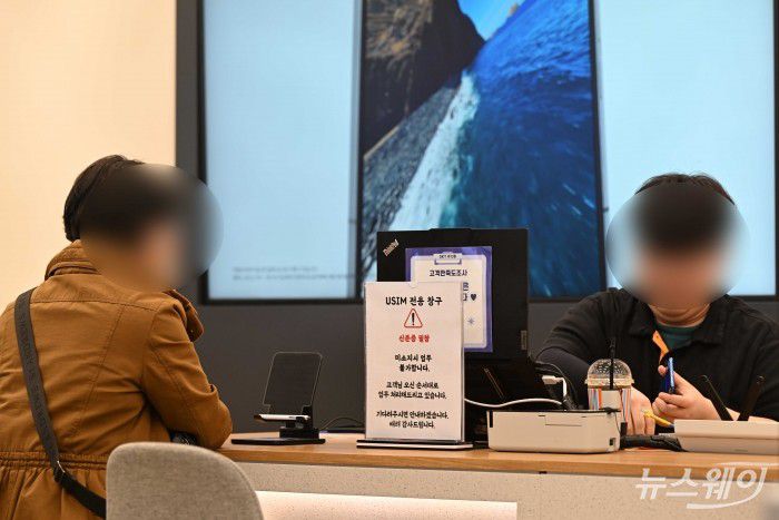 최근 대규모 해킹 공격으로 인해 가입자 유심(USIM) 정보가 탈취된 SK텔레콤(=SKT)이 28일 오전 서울 시내 한 SKT 대리점에서 이용자에게 무료 유심 교체를 하고 있다. 사진=강민석 기자 kms@newsway.co.kr