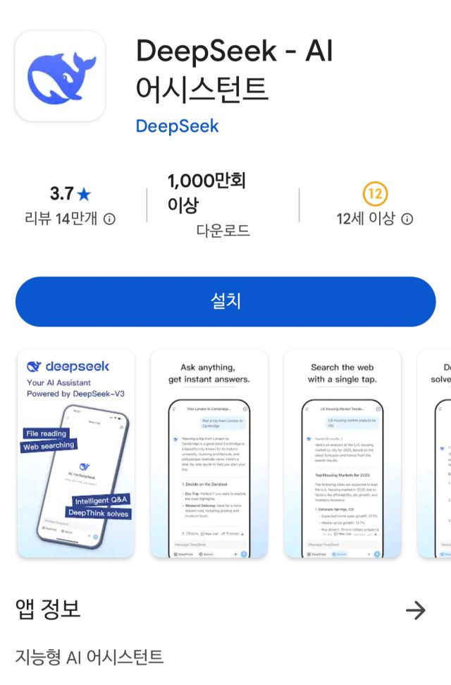 딥시크는 지난 2월부터 국내 앱 마켓에서 잠정 중단했던 신규 다운로드 서비스도 재개했다. 이날 오후 현재 구글 플레이와 애플 앱스토어에서 '딥시크' 또는 영문명 'deepseek'를 넣으면 해당 앱이 노출되고 다운로드받을 수 있다.