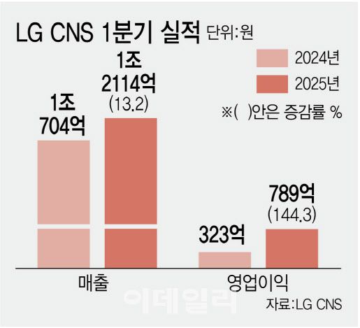 LG CNS는 28일 2025년 1분기 연결기준 매출액 1조 2114억원, 영업이익 789억원을 기록했다고 밝혔다. 이는 전년 동기 대비 각각 13.2%, 144.3% 증가한 수치로, 특히 영업이익은 2.4배 급증하며 어닝 서프라이즈를 보였다. 매출은 2018년 이후 8년 연속 상승세를 이어가고 있다.