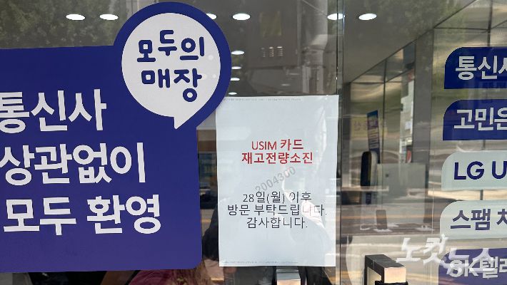 인근 다른 SK텔레콤 공식 인증 대리점도 상황은 비슷했다. 대리점 출입문에는 "고객님 죄송합니다. 금일 USIM이 모두 소진되어 내일 변경 업무를 재개합니다. 양해 바랍니다"라는 안내문이 부착됐다.