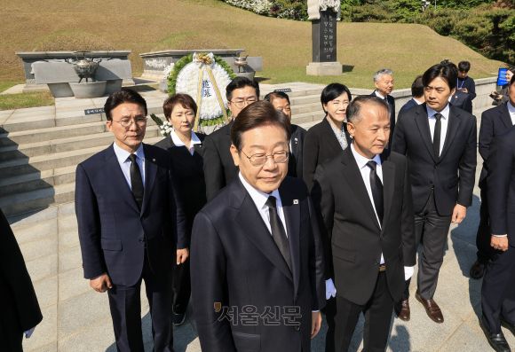 현충원 참배한 이재명 대선 후보 - 이재명 더불어민주당 대선 후보가 28일 서울 동작구 현충원 박정희 전 대통령 묘소를 참배하고 있다. 안주영 전문기자