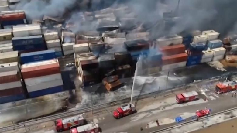 화재로 컨테이너 2천개가 불에 탔고 항구 건물 상당수가 심하게 파손됐습니다.
