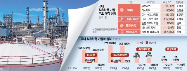 석유화학 업체들은 규모를 막론하고 2023년을 마지막으로 실적 악화에 시달리고 있다. LG화학은 2023년 1조 8523억 원에 달했던 영업이익이 지난해 5632억 원 적자로 돌아섰고 같은 기간 SK이노베이션도 1조 2868억 원을 찍었던 영업이익이 231억 원으로 쪼그라들었다. 유동성 위기를 넘긴 롯데케미칼 역시 매출은 늘었지만 영업적자는 3477억 원에서 8940억 원으로 확대됐다. 업계 관계자는 “석유화학 업체들의 비주력 사업 매각 규모가 점점 커지고 있다”면서 “위기가 커지면 본업에서 가격 조건을 내려놓는 사례가 나올 수 있다”고 말했다.