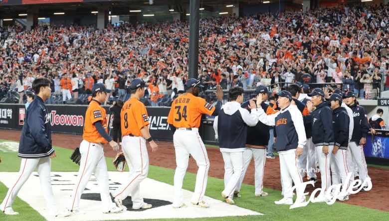 김경문 감독이 이끄는 한화는 지난 27일 대전 한화생명 볼파크에서 열린 2025 신한 SOL Bank KBO리그 KT 위즈와의 팀 간 5차전에서 4-3으로 이겼다. 2연승과 함께 주말 3연전 위닝 시리즈를 손에 넣었다.