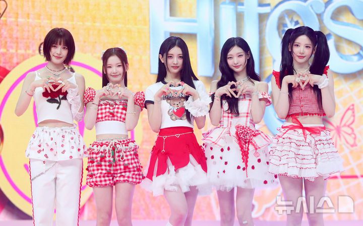 [서울=뉴시스] 김혜진 기자 = 그룹 힛지스(왼쪽부터 비비, 이유, 서희, 혜린, 서진)가 28일 오후 서울 강서구 SBS공개홀에서 열린 첫 번째 싱글 앨범 'Things we love : H(띵스 위 러브 : 에이치)' 데뷔 쇼케이스에서 포즈를 취하고 있다.타이틀곡 '사워패치(SOURPATCH)'는 그루비한 리듬의 808베이스와 통통 튀는 드럼 비트가 돋보이는 곡이다. 2025.04.28. jini@newsis.com |
