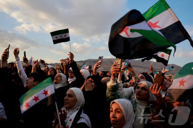 아사드 축출 후 환호하는 시리아 시민 ⓒ 로이터=뉴스1 ⓒ News1 구경진 기자