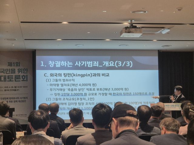 모성준 사법연수원 교수는 28일 서울 서초구 엘타워 안단테홀에서 열린 ‘제1회 국민을 위한 대토론회’ 기조 강연에서 “최근 조직적 사기 범죄의 특징은 온라인화와 점조직화, 국제화, 과감한 아웃소싱”이라며 이같이 밝혔다. ‘민생침해 범죄로서의 사기 범죄 대응을 위한 정책 개선방안’을 주제로 열린 이날 행사는 민생 현안과 관련 있는 주제에 대해 실무·학계의 다양한 전문가들의 지혜를 나누고, 정책적 대응 방안을 마련하기 위해 한국형사·법무정책연구원(원장 정웅석)이 기획한 자리다.