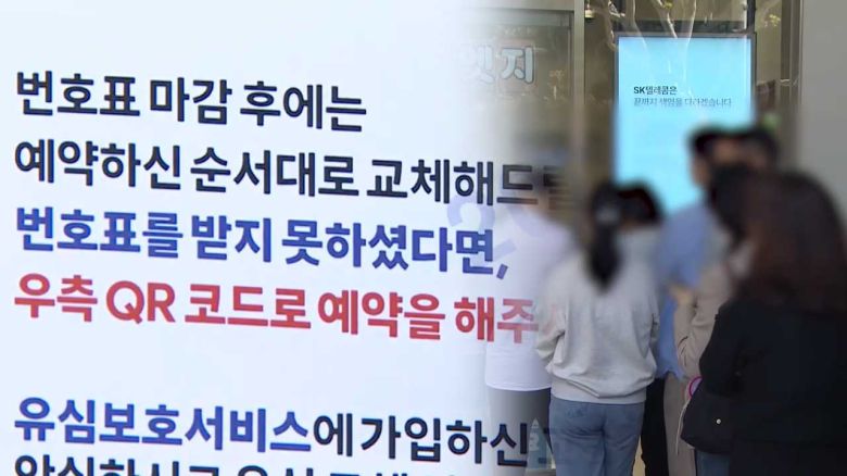 온라인 예약이 있었지만 몰려드는 교체 수요를 감당하지 못하고 접속 장애가 속출했고 결국 현장 이용자들을 위한 번호표가 등장했습니다.