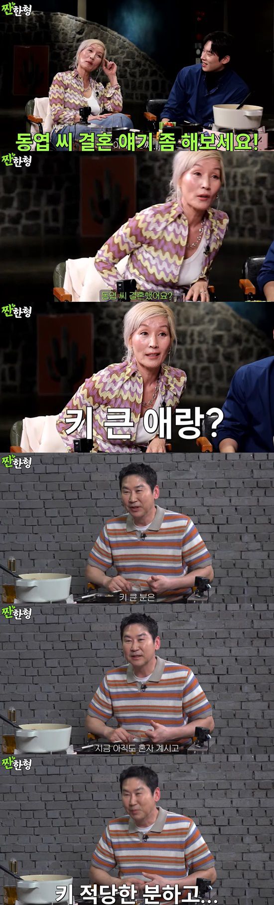 신동엽은 이혜영의 이야기에 웃으며 "키 큰 분은 아직도 혼자 계신다. 남자친구가 있는 지 없는 지는 모르겠다"며 "저는 이제 키 적당한 분하고 (결혼했다)"며 유쾌하게 받아쳤다.