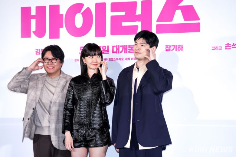 영화 '바이러스'는 이유 없이 사랑에 빠지는 치사율 100% 바이러스에 감염된 '택선'(배두나 분)이 모태솔로 연구원 '수필'(손석구 분), 오랜 동창 '연우'(장기하 분), 그리고 치료제를 만들 수 있는 유일한 전문가 '이균'(김윤석 분)까지 세 남자와 함께 예기치 못한 여정을 그리는 영화다. 영화는 오는 5월 7일 개봉한다.