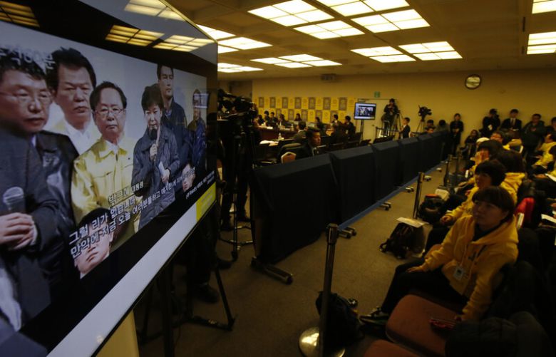 4·16 세월호참사 특별조사위원회 제1차 청문회 이틀째인 2015년 12월15일 오후 서울 명동 서울와이더블유시에이(YWCA) 강당에서 질의가 진행되고 있다. 사진의 화면은 세월호 사고 당시 진도를 방문한 박근혜 대통령이 ‘침몰 현장에서 만난 실질 잠수 인력이 500명이라는 보고와 달리 2명에 불과했다’는 유가족 항의에 “그럴 리가 없다”며 김석균 당시 해양경찰청장을 두둔하는 모습. 이정아 기자 leej@hani.co.kr |
