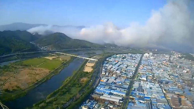 <질문 3> 영상을 보시면 연기가 주변 수 킬로미터까지 자욱합니다. 지난 3월 경북 의성 화재가 발생한 지 한 달 정도 지난 시점인데요. 그때보다는는 숲이 더 녹색을 띠고 있는데요. 이렇게 불이 크게 확산한 이유는 어디에 있다고 보세요.