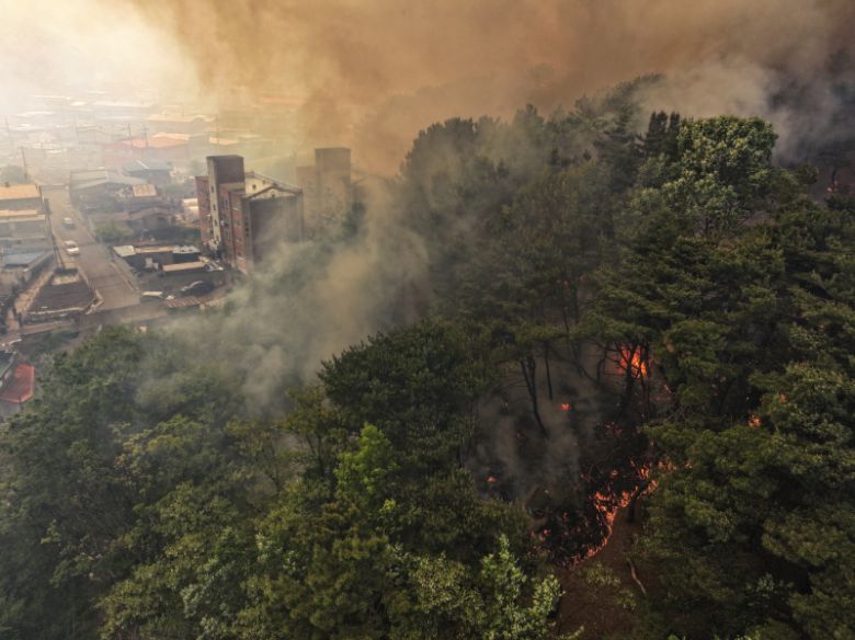 산림당국은 대응단계를 3단계로 격상, 헬기 등 가용자원을 총동원해 진화작업을 벌였지만 해가 지면서 야간 대응 체제로 전환했다.