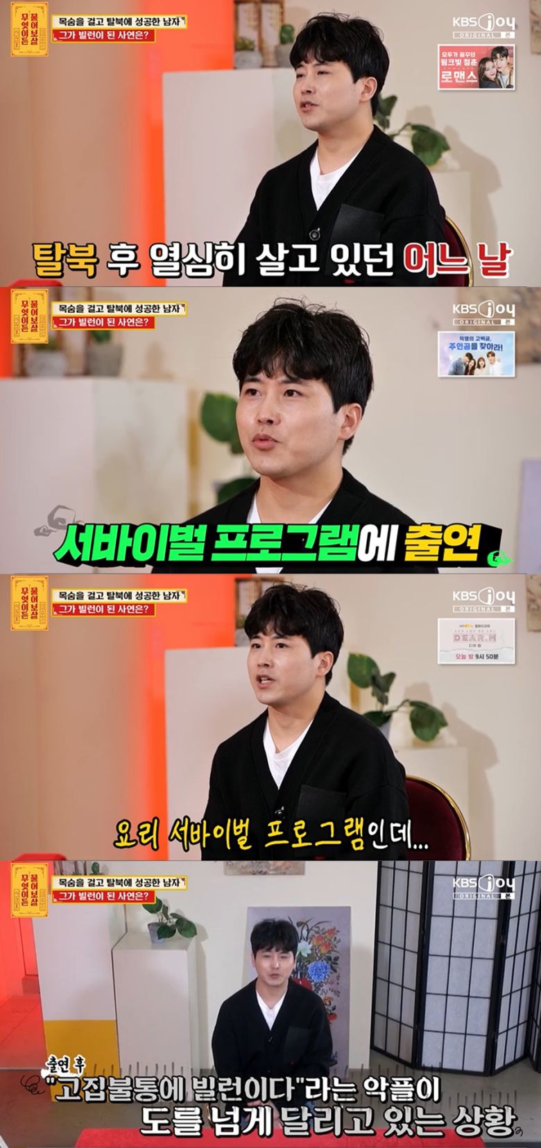 그는 "제가 북한에 있을 때 탈북 브로커로 활동을 하다가 탈북을 하고 열심히 살고 있는 와중에 최근 개인 서바이벌 프로그램에 나갔다"며 '백종원의 레미제라블'에 출연한 경험을 전했다.